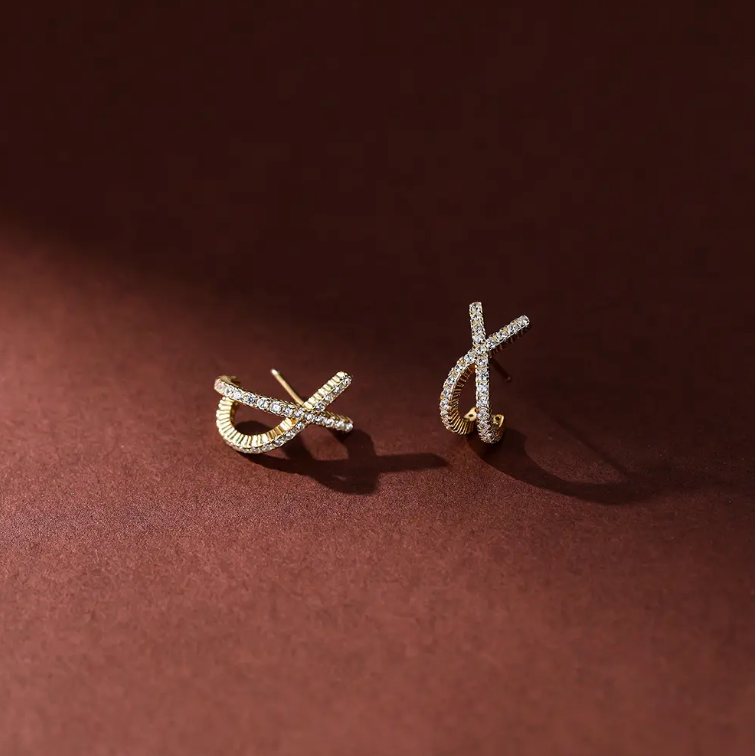 Cerceii argint 925 placat aur Oanne sunt realizați dintr-un material ce pare a fi argint placat cu aur, oferind un aspect elegant și rafinat. Designul lor modern și asimetric prezintă linii curbate și intersectate, accentuate cu mici cristale strălucitoare, adăugând un plus de strălucire.