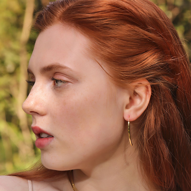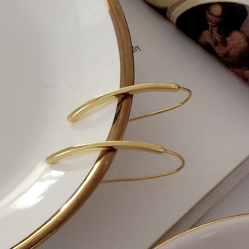 Cercei pentru dama sunt confecționați din argint, un metal prețios apreciat pentru strălucirea sa naturală și durabilitatea în timp. Acești cercei sunt placati cu aur, adăugându-le o nuanță caldă și aurie. Au un design simplu și minimalist, fără ornamente. Sunt concepuți pentru a fi purtați usor și pentru a se potrivi cu o varietate de ținute.