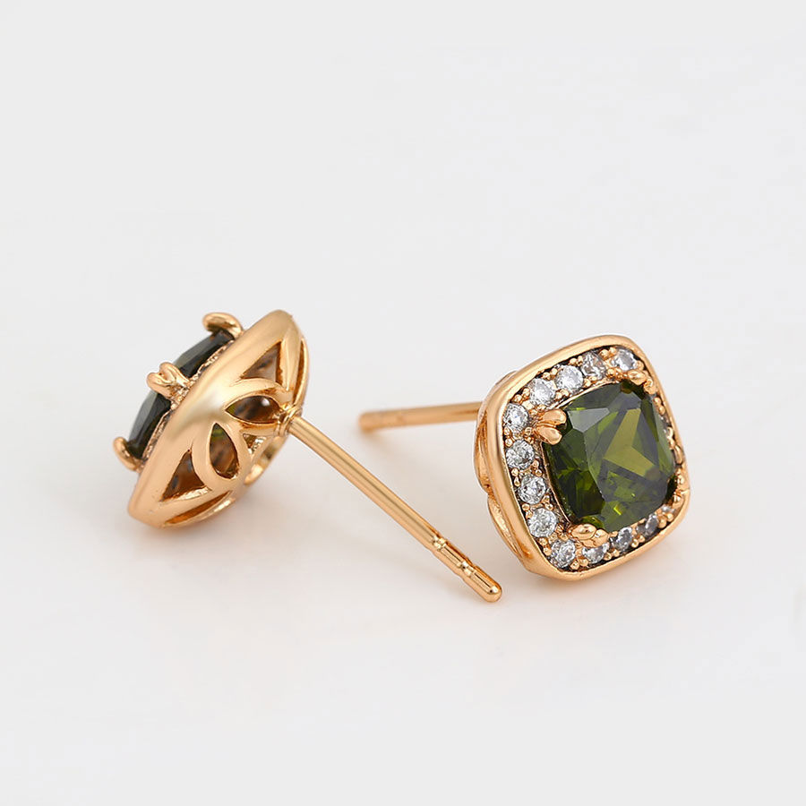 Cerceii dama placati aur pietre verzi sunt bijuterii care au o bază de metal, acoperită cu un strat de aur. Această combinație de aur și cristal verde poate oferi o estetică elegantă și strălucitoare cerceilor. Aurul oferă o strălucire caldă și bogată, în timp ce cristalul verde adaugă o notă de culoare și sclipire. Cerceii placati cu aur cristal verde pot fi purtați ca accesorii elegante la o varietate de ocazii, de la evenimente formale la întâlniri informale.