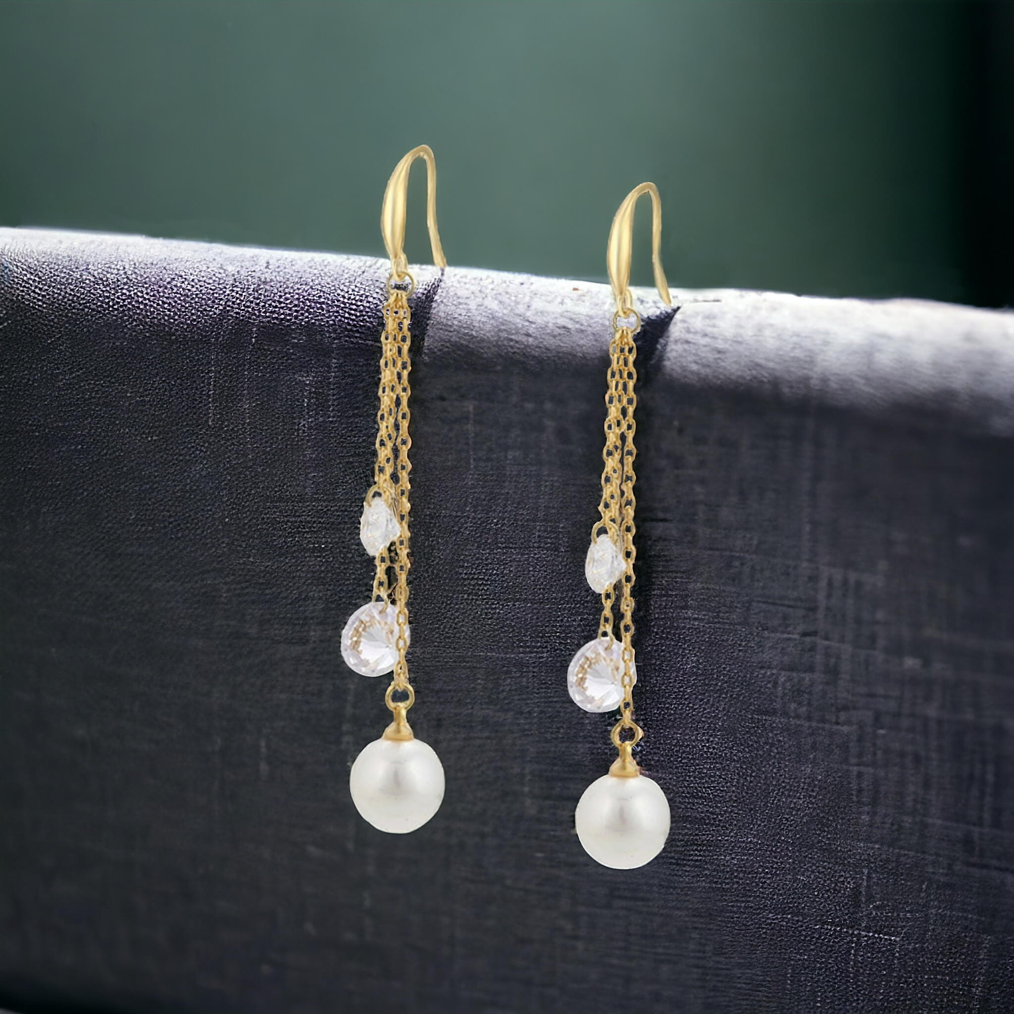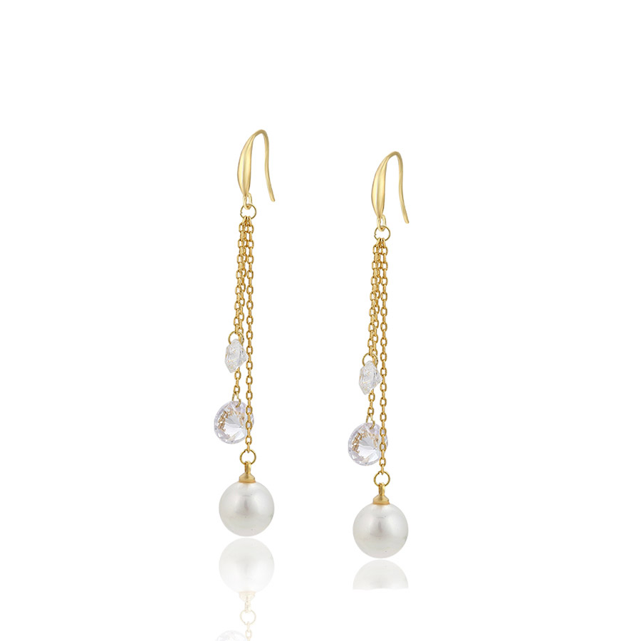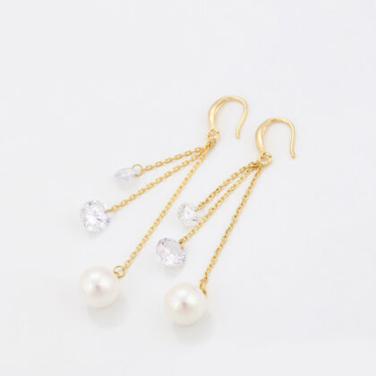 Cerceii eleganti cu perla placati aur 24k emană eleganță și strălucire, transformându-i într-o bijuterie de excepție. Acești cercei se remarcă prin simplitatea lor rafinată și frumusețe. Forma lor clasică și versatilă îi face potriviți pentru a fi asortați cu orice ținută și ocazie.