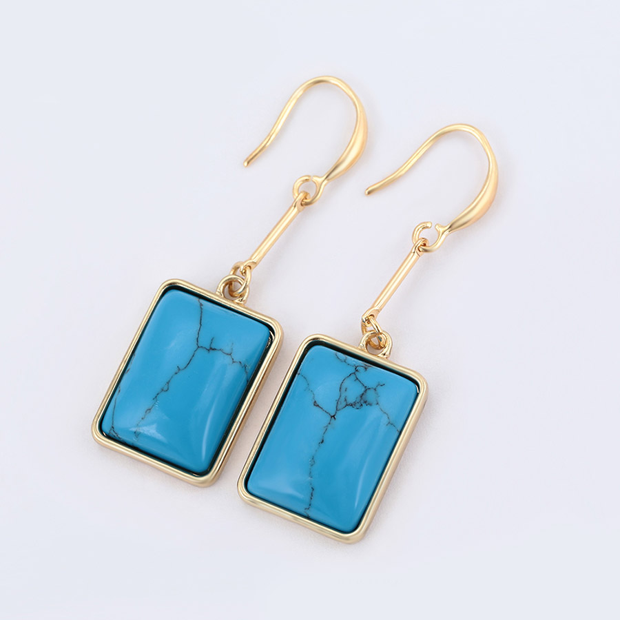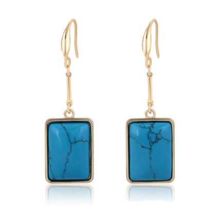 Cerceii eleganti placati aur pietre turcoaz sunt bijuterii sofisticate și rafinate care adaugă o notă de eleganță și strălucire oricărei ținute. Acești cercei sunt confecționați din otel inoxidabil, acoperit cu un strat subțire de aur pentru a le oferi un aspect strălucitor și luxos.