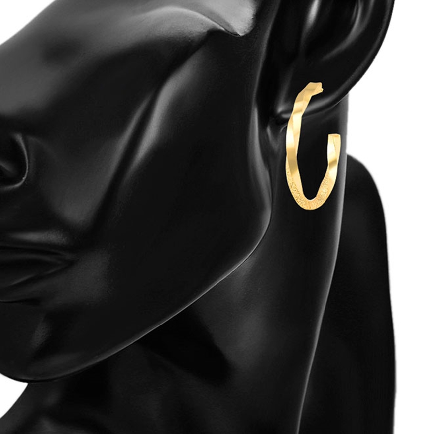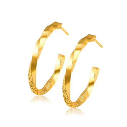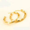 Forma cerceilor adaugă un element captivant și unic bijuteriei. Această textură poate simboliza unitatea și legătura într-un mod subtil, sau poate fi pur și simplu o expresie a stilului și eleganței tale. Fiecare cercel este atent lucrat și placat cu aur, oferindu-le un luciu strălucitor și o nuanță aurie caldă. Aurul adaugă o aură de eleganță și rafinament bijuteriei și strălucește fermecător în lumină.