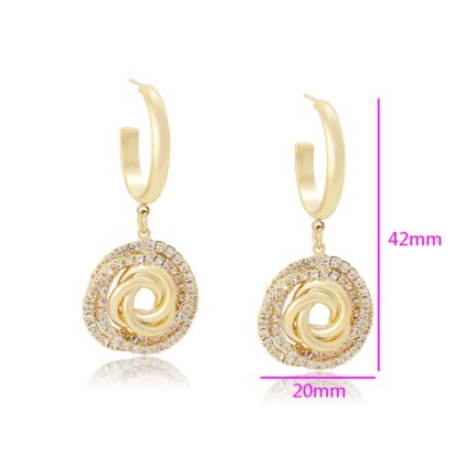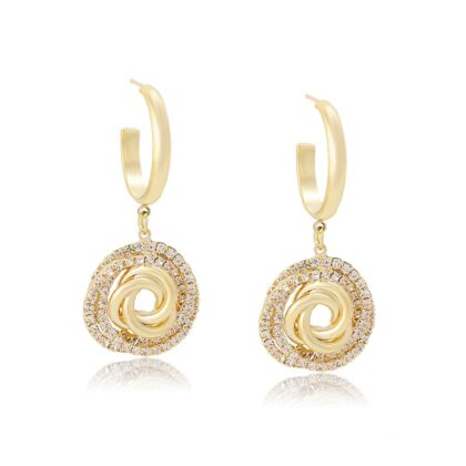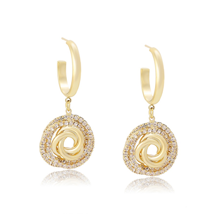 Cerceii eleganti Spark sunt bijuterii care au un strat subțire de aur aplicat pe suprafața lor, iar cristalele incolore sunt utilizate ca o componentă decorativă. Acești cercei combină eleganța și strălucirea aurului cu sclipirea și claritatea cristalelor incolore, creând astfel un aspect rafinat și atrăgător. Cerceii placati cu aur pot fi purtați ca accesorii elegante la o varietate de ocazii, de la evenimente formale la întâlniri informale.
