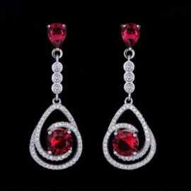 Cerceii lungi din argint 925 cu zirconiu rosu sunt o bijuterie eleganta si stralucitoare, care poate fi purtata la evenimente speciale sau la ocazii formale. Cerceii sunt realizati din argint de calitate superioara si sunt decorati cu pietre de zirconiu rosu stralucitor, care adauga o nota de culoare si eleganta.