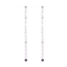 Cerceii lungi banuti argint 925 sunt un accesoriu de nelipsit din garderoba dumneavoastra. Lungimea cerceilor este formată dintr-o serie de banuți mici din argint, care sunt legați împreună pentru a crea un design original, care adagă o notă de autenticitate și un element vintage bijuteriei.