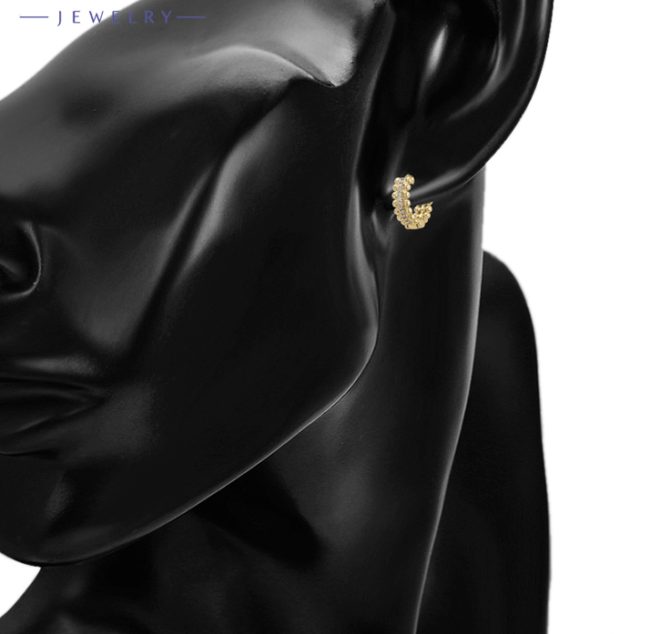 Acești cercei mici pentru damă, placați cu aur, sunt definiția eleganței cotidiene. Cu un design delicat și minimalist, ei adaugă o notă subtilă de rafinament fiecărei ținute, fiind perfecti pentru purtarea zilnică. Placarea cu aur oferă o strălucire discretă, completând cu bun gust orice stil vestimentar.