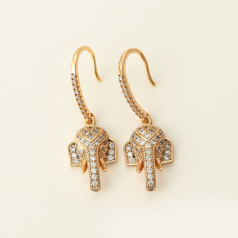 Cerceii placati aur elefant cu cristale sunt bijuterii elegante și distincte, care adaugă o notă de rafinament și stil la orice ținută. Acești cercei sunt confecționați din metale comune, și sunt ornamentați cu cristale. Au un design subtil și atrăgător, cu un elefant stilizat sau detaliat, care atârnă de un sistem de prindere.