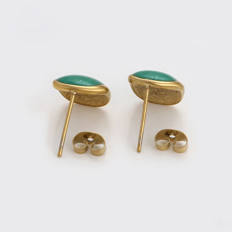 Cerceii placati aur Emerald green stone sunt bijuterii care au o bază de metal, acoperită cu un strat de aur. Această combinație de aur și cristal verde poate oferi o estetică elegantă și strălucitoare cerceilor. Aurul oferă o strălucire caldă și bogată, în timp ce cristalul verde adaugă o notă de culoare și sclipire. Cerceii placati cu aur cristal verde pot fi purtați ca accesorii elegante la o varietate de ocazii, de la evenimente formale la întâlniri informale.