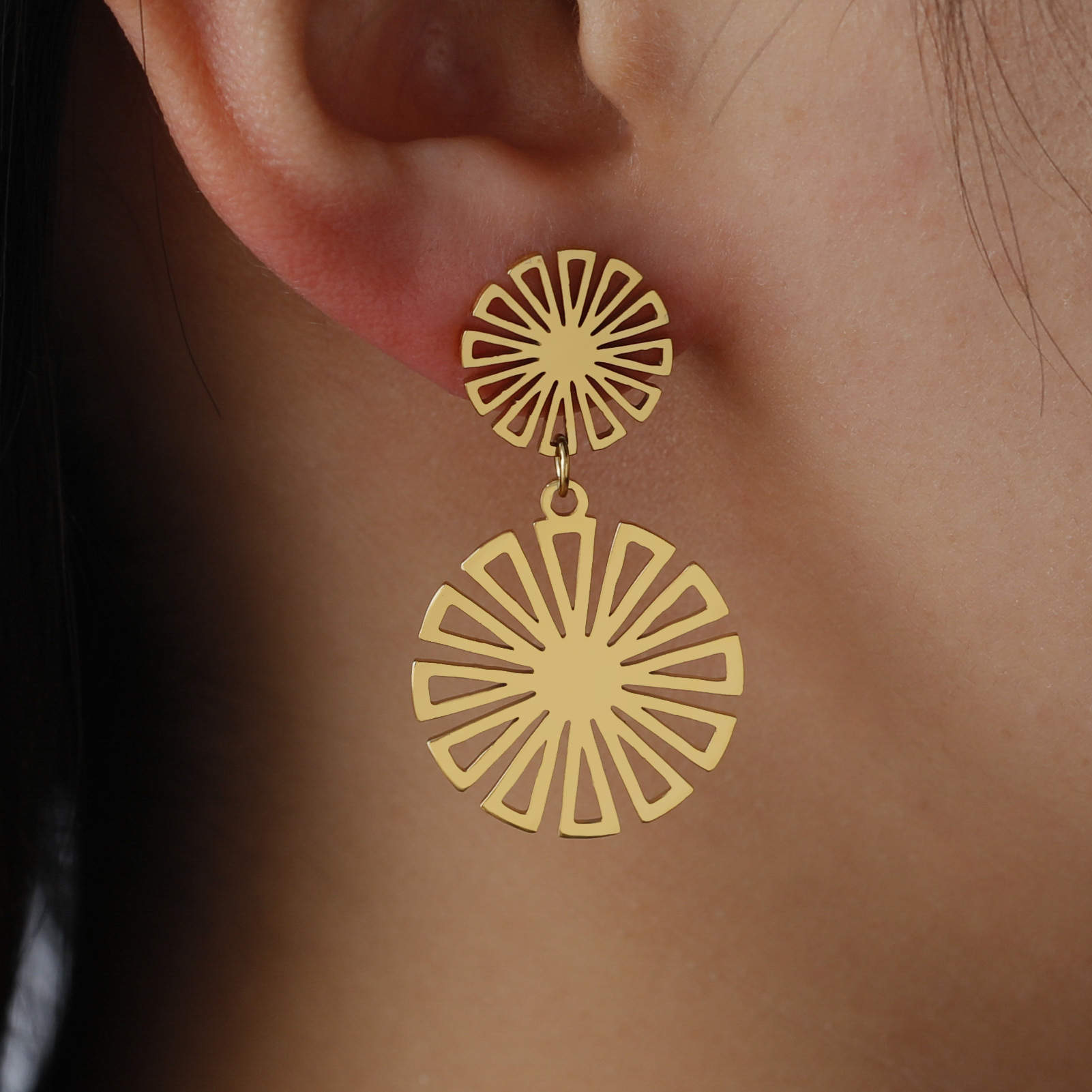 Forma razelor aurii adaugă o notă de sofisticare și grație, evocând imaginea razele solare sau a unui design cosmic. Aspectul lor strălucitor și luminozitatea aurului adaugă un plus de eleganță și stil oricărei persoane care îi poartă. Pot fi purtati cu ocazii speciale sau pot fi integrate în ținute de zi cu zi pentru a adăuga un strop de strălucire și rafinament.