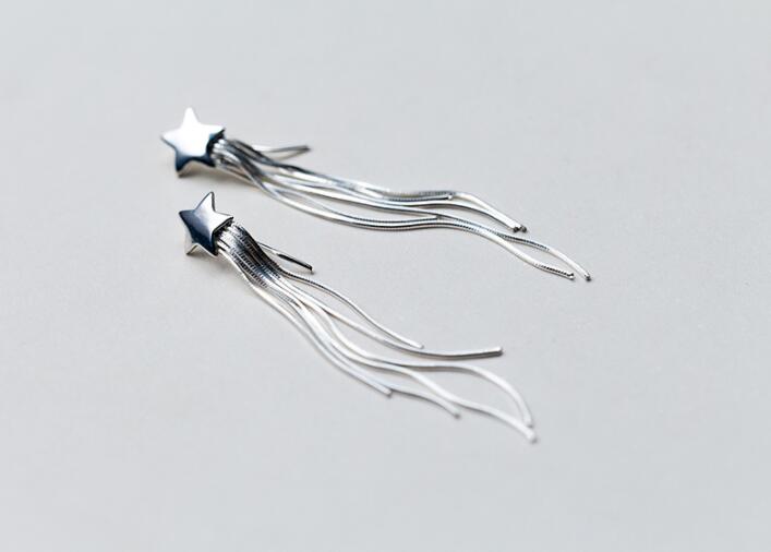 Cerceii lungi cu stea sunt o alegere perfecta pentru a adăuga un strop de strălucire și stil la aspectul dumneavoastra. Steaua adaugă un element de mister și poate simboliza aspirațiile sau visele personale. Acești cercei sunt potriviți pentru a completa ținutele elegante sau pentru a adăuga un accent deosebit la ținutele casual.
