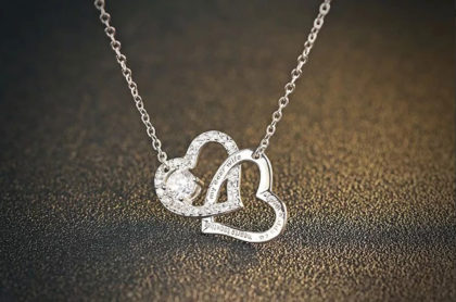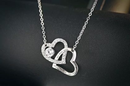 Colierul din argint 925 inimioara dubla se potriveste atat stilului casual, de vacanta cat si celui de zi cu zi. Pandantivul are forma a două inimioare care se împletesc. Acest colier cu pandantiv în formă de inimioară dublă este potrivit pentru a fi purtat ca un simbol al iubirii tale sau pentru a-l oferi cuiva drag ca un cadou special.