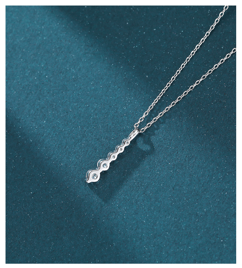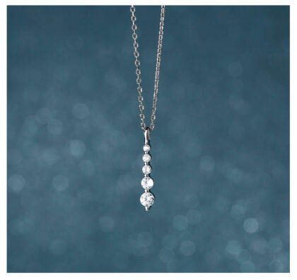 Colierul argint 925 pandantiv lung zirconiu este o bijuterie strălucitoare și rafinata. Pandantivul are o formă lungă și elegantă si este decorat cu pietre de zirconiu, care strălucesc frumos și adaugă bijuteriei un aspect sofisticat. Aceste pietre imită cu perfectiune strălucirea diamantelor.