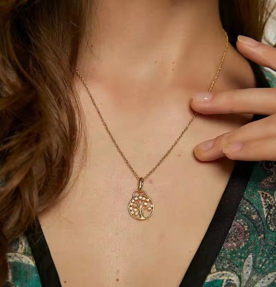 Aceast colier din argint placată cu aur poate fi o bijuterie cu semnificații profunde, purtând cu sine mesajul înrudirii, forței și creșterii interioare. Este potrivită pentru a fi purtată, amintindu-ți de valorile tale sau ca un cadou special pentru cineva drag, pentru a transmite un mesaj de conexiune și dragoste. Indiferent de ocazie, această bijuterie cu pandantiv rotund copacul vieții va încânta prin simbolismul său și prin eleganța sa subtilă, oferind un plus de strălucire și semnificație oricărei apariții.