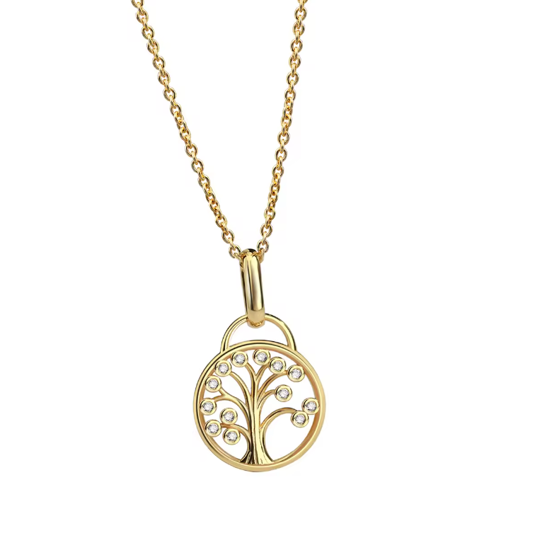 Colierul argint 925 Delicate tree este o bijuterie distinctivă și semnificativă, ce îmbină eleganța argintului cu strălucirea auriului, aducând cu sine o puternică simbolistică. Pandantivul rotund, reprezentând copacul vieții, conferă bijuteriei un caracter unic și profund. Simbolul copacului vieții are rădăcini adânci, ramuri îndreptate spre cer și frunze abundente, reprezentând ciclul vieții, creșterea, conexiunea și înrudirea. În cultura și credințele multor popoare, copacul vieții este asociat cu înțelepciunea, stabilitatea și forța interioară.