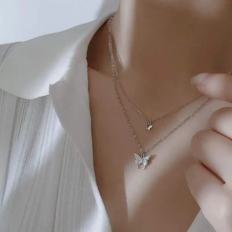 Lanțul secundar, mai scurt, adaugă un element subtil de simetrie și echilibru. Pandantivul fluture mic de la lanțul secundar este simplu și adorabil, complementând frumusețea pandantivului principal. Acesta reprezintă o notă subtilă de simplitate și gingășie.
