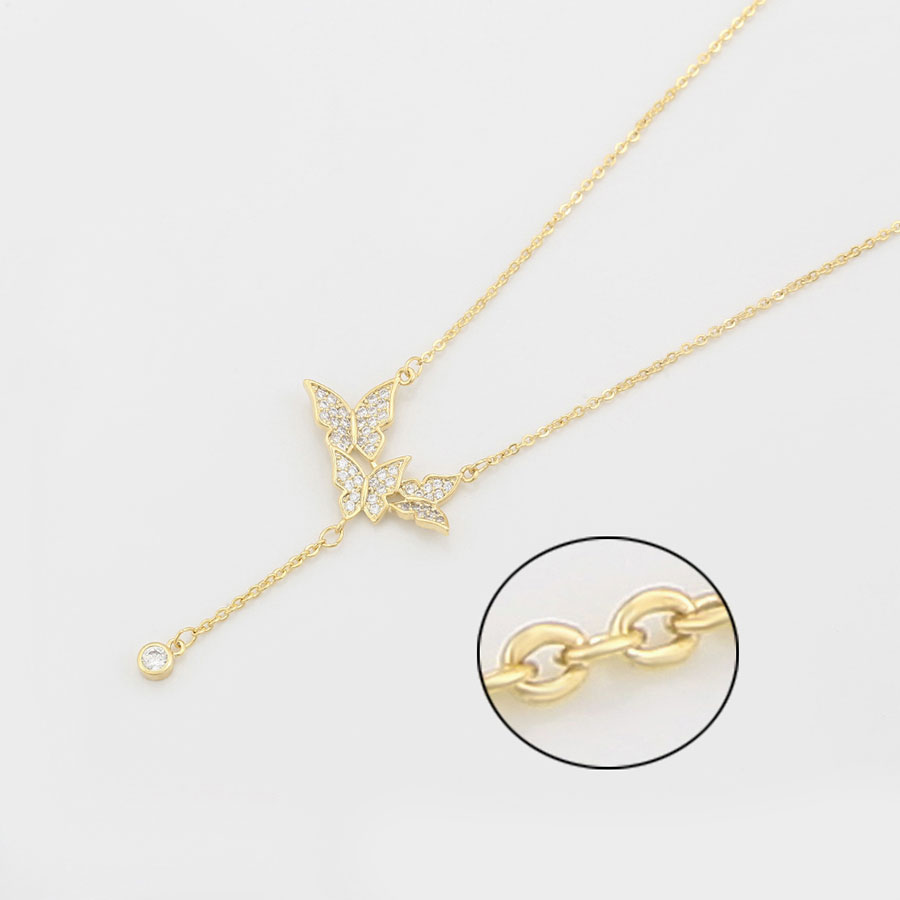 Pandantivul prezintă un fluturaș gratios încrustat cu cristale din zirconiu, care adaugă o notă de lux bijuteriei. Colierul în sine este subțire și elegant, având o lungime ajustabilă pentru a se potrivi perfect cu gâtul dvs. Acesta se fixează cu o siguranță discretă, astfel încât să rămână în loc pe tot parcursul zilei sau al serii.