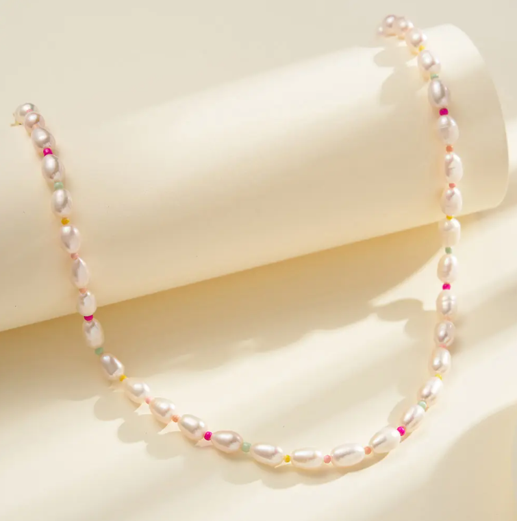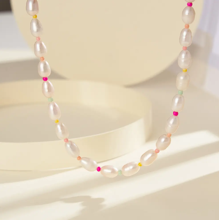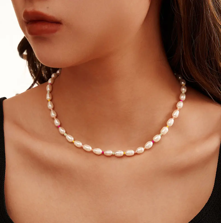 Colierul argint 925 perlute si margele este elegant și rafinat, compus dintr-un rând de perle mici, de formă neregulată. Perlele sunt sidefate, iar distanța dintre ele este uniformă, ceea ce contribuie la un aspect armonios. Lanțul din argint adaugă un contrast subtil și elegant, evidențiind delicatețea perlelor.
