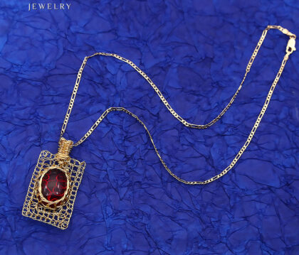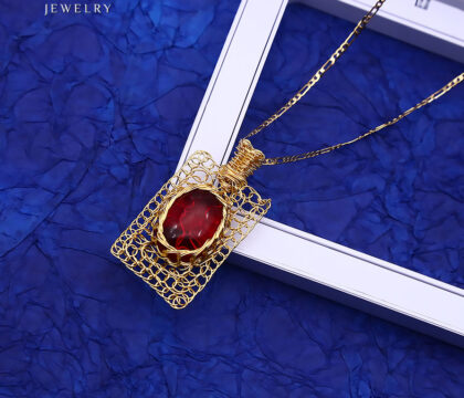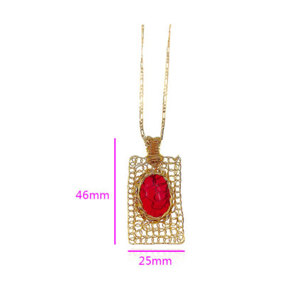Designul dreptunghiular al pandantivului este adesea asociat cu linii clare și aspect minimalist, oferind un aspect contemporan și sofisticat. Cristalul roșu, amplasat strategic în mijlocul pandantivului, atrage privirile datorită culorii sale vibrante și a strălucirii sale, conferind colierului o notă de eleganță și rafinament.