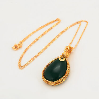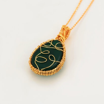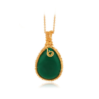 Placarea cu aur adaugă o strălucire caldă, evidențiind contururile delicate ale acestui colier. Designul său simplu, dar elegant, evidențiază linii fluide și un stil clasic, care se îmbină perfect cu strălucirea cristalului verde.