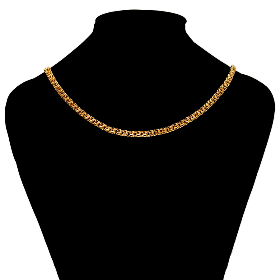 Colierul gros cu model deosebit placat cu aur este o bijuterie cu o prezență puternică, ce emană lux și eleganță. Cu un design solid și un luciu aurit, acest lănțisor adaugă o notă de opulență și rafinament oricărei ținute. Grosimea și greutatea lănțisorului îi conferă o prezență remarcabilă, făcându-l un element deosebit de impresionant.
