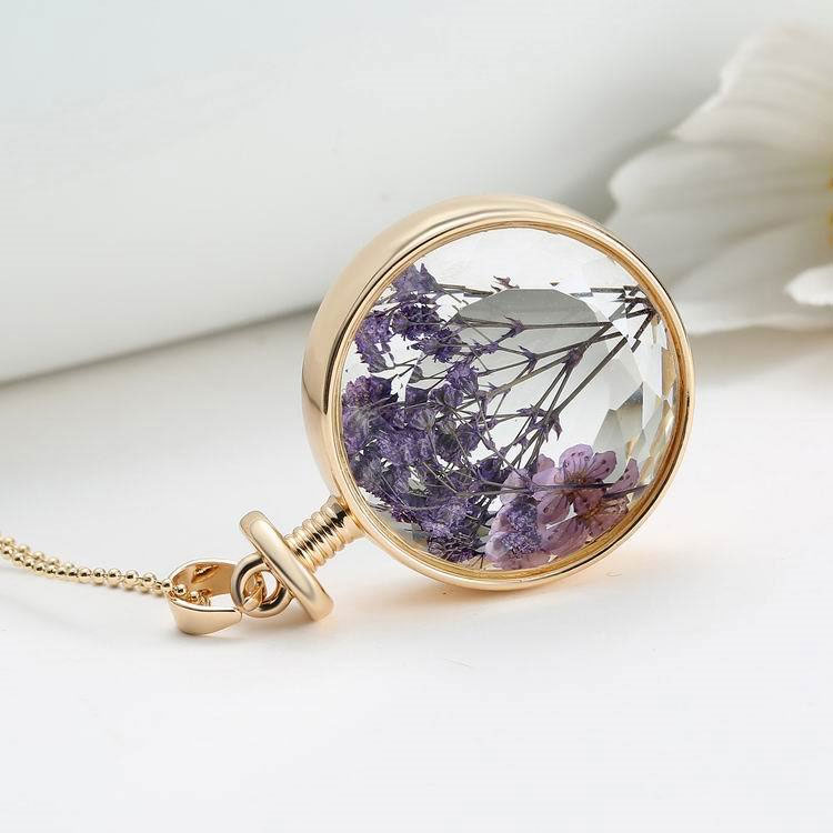 Colierul handmade floricele uscate pe sticla este o bijuterie ce aduce frumusețea naturală a florilor într-o formă delicată și elegantă. Fiecare element al acestui colier a fost creat cu grijă și măiestrie pentru a vă oferi o bijuterie unică și deosebită.
