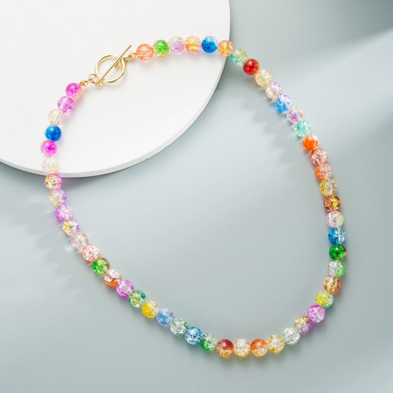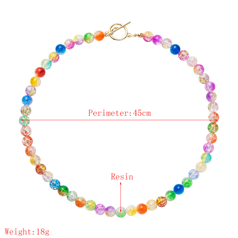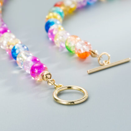 Punctul focal al acestui colier sunt mărgelele multicolore, care adaugă o explozie de culoare. Fiecare mărgea este o mică operă de artă, aducând veselie și vitalitate bijuteriei.