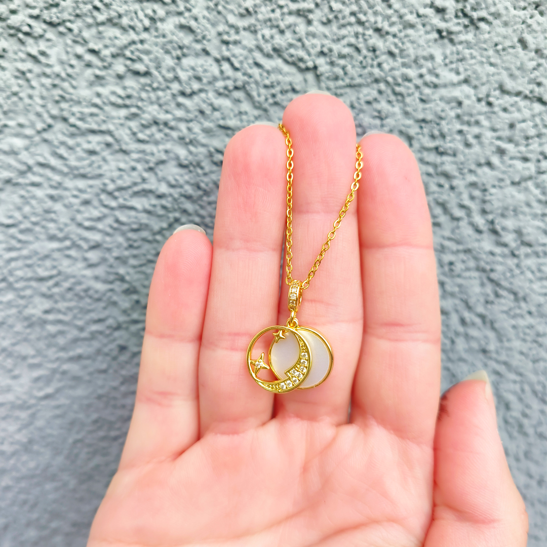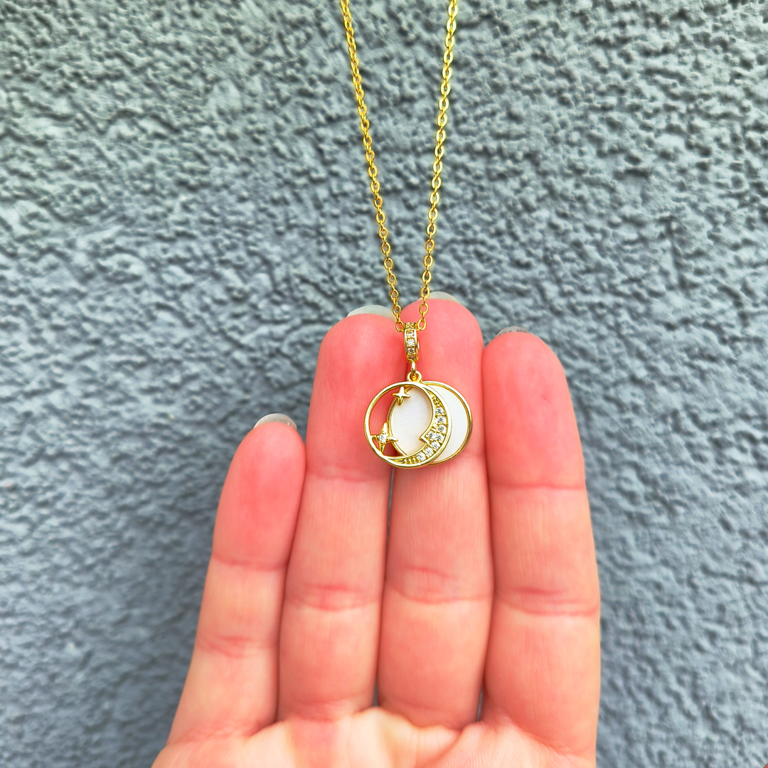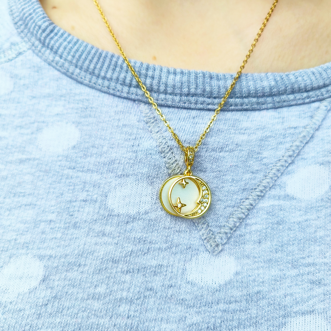 Acest colier cu pandantiv lună placat cu aur poate fi purtat în diverse ocazii, de la evenimente mai formale la întâlniri mai casual. Este o bijuterie versatilă, potrivită pentru a completa diferite stiluri vestimentare.