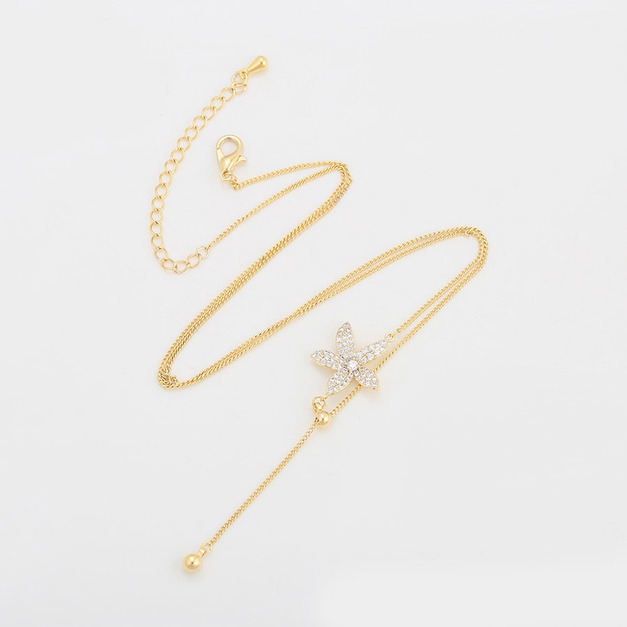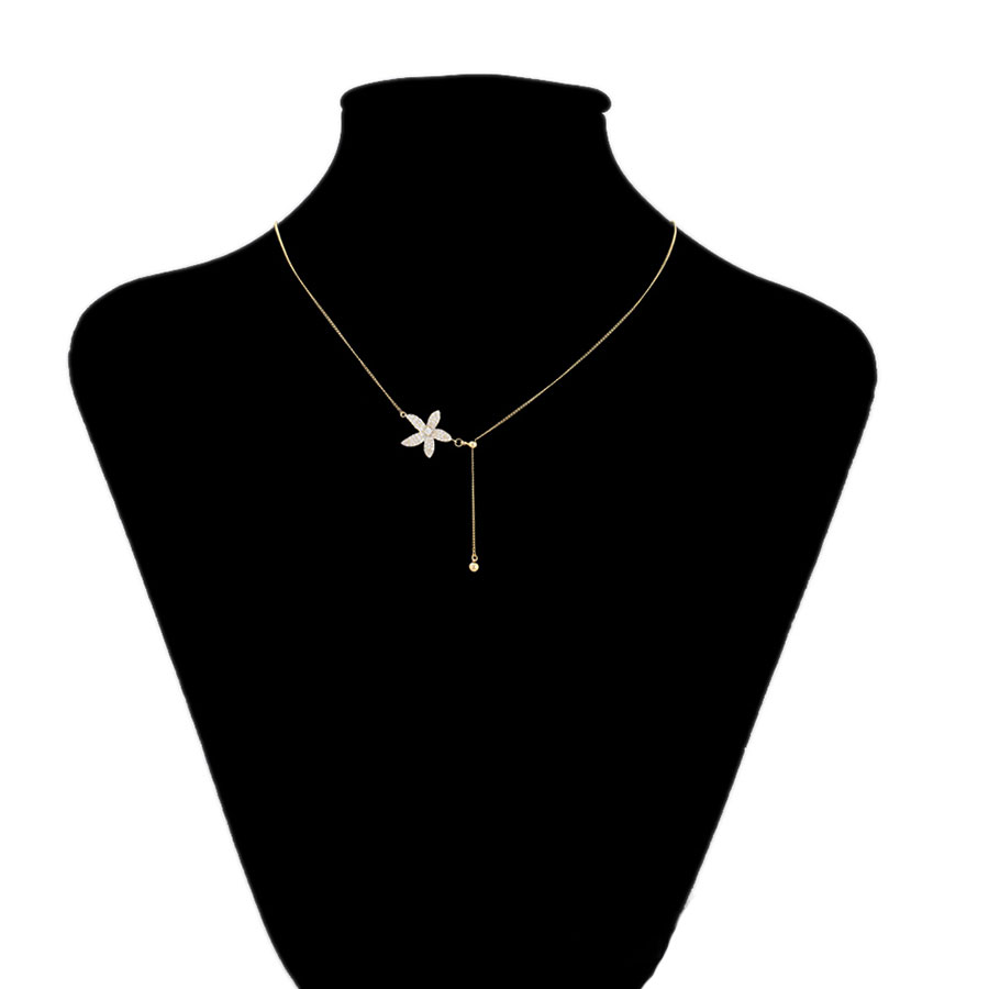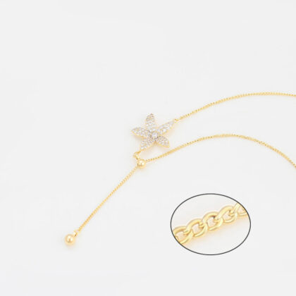 Colierul placat aur floricica cristale Eva este confecționat dintr-un aliaj metalic, care este ulterior placat cu aur pentru a obține un aspect strălucitor și elegant. Pandantivul are forma unei floricici, simbolul naturii, al frumuseții și al prospețimii. Florile sunt asociate de obicei cu sentimente de iubire, bucurie și apreciere.