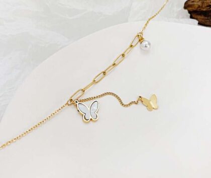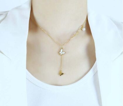 Este o bijuterie delicată și sofisticată, potrivită pentru a fi purtată în diferite ocazii. Combinarea fluturelui și a perlei adaugă o notă de prospețime și rafinament, iar strălucirea aurului completează aspectul bijuteriei. Este o alegere populară pentru a celebra frumusețea naturală, pentru a exprima sentimente sau pentru a adăuga un element elegant și feminin la ținutele personale.