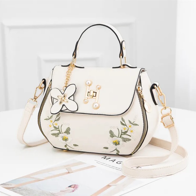 Această geantă albă cu model floral este un accesoriu cochet și fermecător. Culorea sa luminoasă și designul floral îi conferă un aer proaspăt și potrivit pentru sezoanele mai calde sau evenimentele de zi cu zi. Este o geantă mică, dar elegantă, care vă permite să vă păstrați lucrurile esențiale la îndemână și să adăugați un strop de eleganță tinutelor.