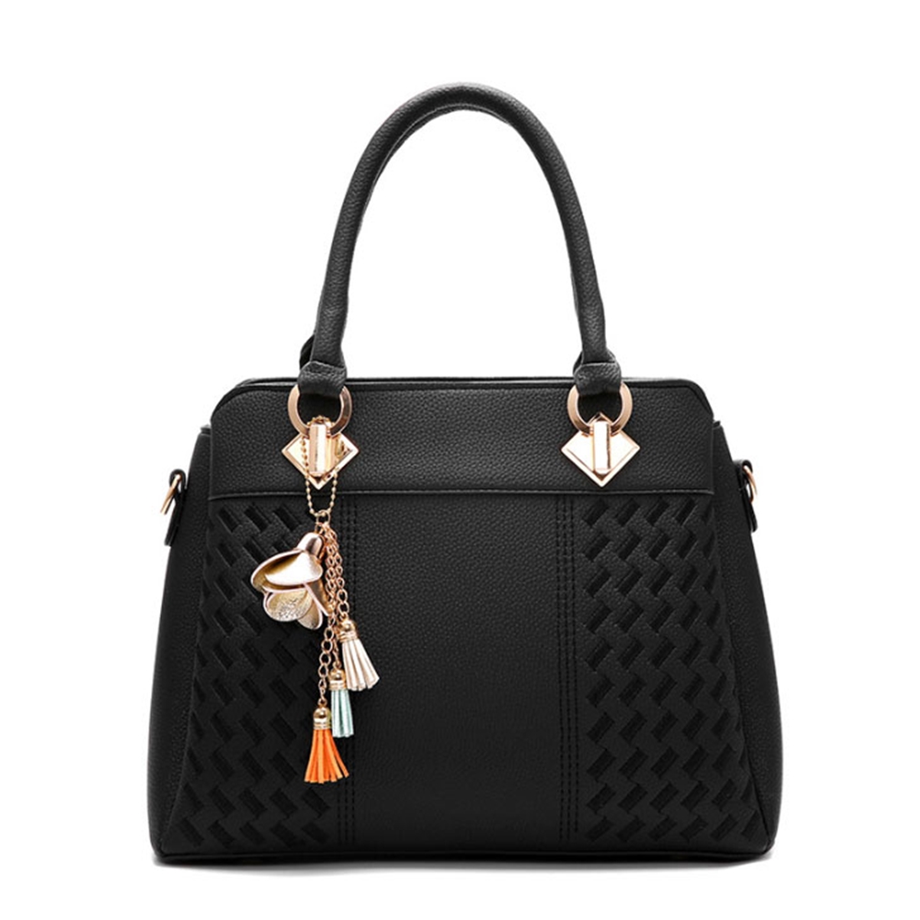 Geanta neagra cu breloc ciucurei este un accesoriu clasic și elegant, potrivit pentru o varietate de ocazii. Geanta este confecționată din piele ecologică. Culoarea neagră este o opțiune populară pentru genti deoarece adaugă un aer de rafinament și poate fi ușor de asortat cu diverse ținute. Aceasta poate oferi suficient spațiu pentru a transporta obiectele esențiale, cum ar fi portofelul, telefonul mobil, cheile, ochelarii de soare și alte lucruri personale. Produsul se inchide cu fermoar.