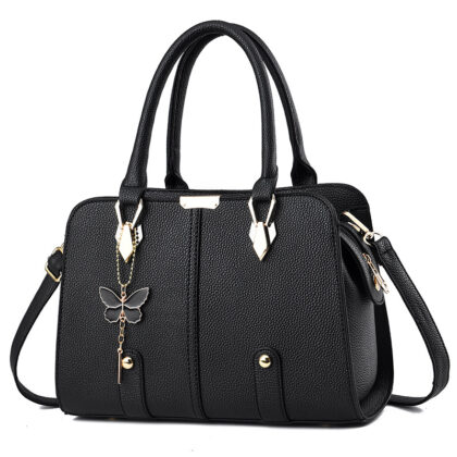 Geanta neagra breloc fluturas este confecționată din piele ecologică. Culoarea neagră este o opțiune populară pentru genti deoarece adaugă un aer de rafinament și poate fi ușor de asortat cu diverse ținute. Aceasta poate oferi suficient spațiu pentru a transporta obiectele esențiale, cum ar fi portofelul, telefonul mobil, cheile, ochelarii de soare și alte lucruri personale. Produsul se inchide cu fermoar.