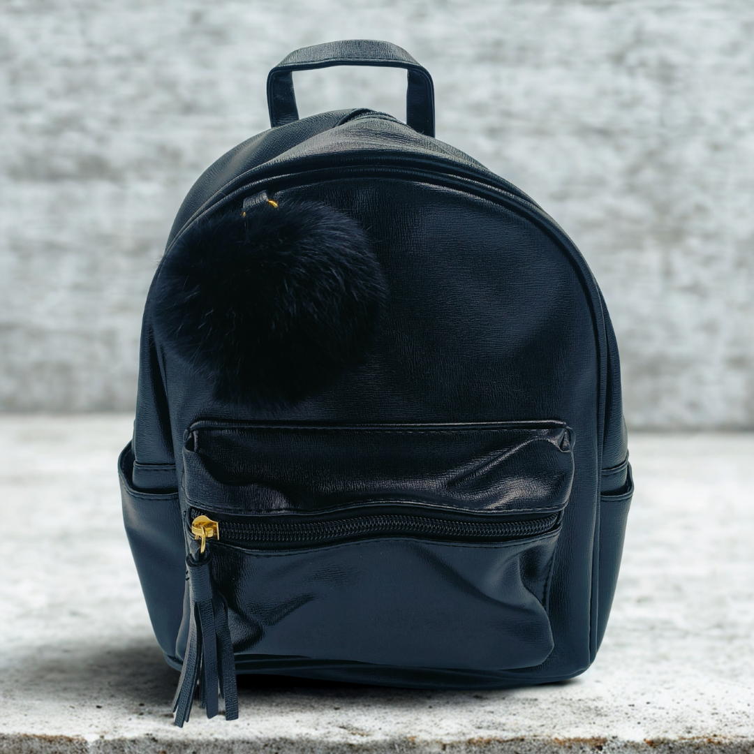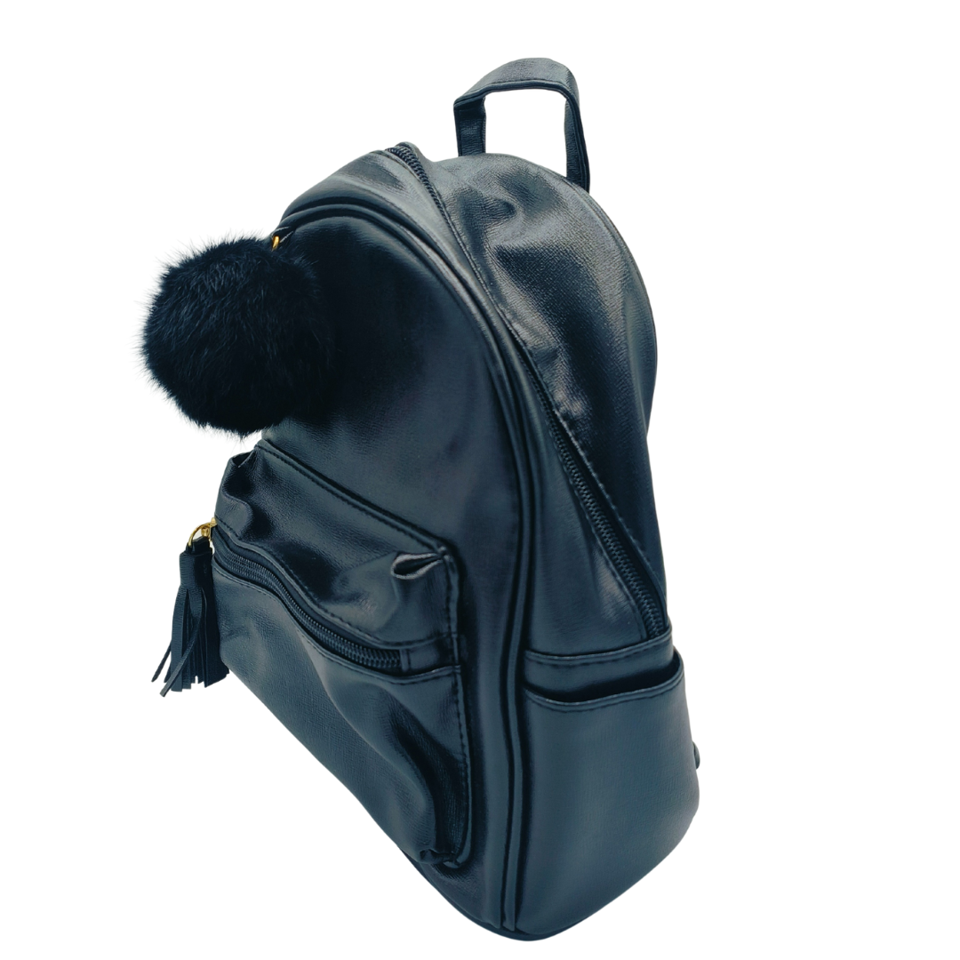 Ghiozdan damă negru din piele ecologică cu accesoriu puf – stil urban și versatil