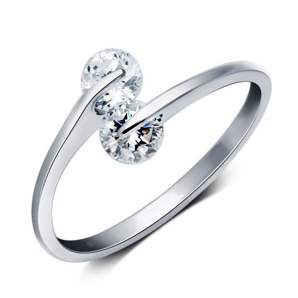 Partea frontală a inelului aduce un accent strălucitor prin intermediul celor două cristale rotunde din zirconiu, amplasate în punctul de întâlnire a celor două părți ale inelului. Aceste cristale strălucesc delicat, captând lumina într-un mod subtil și creând un efect de strălucire discretă.