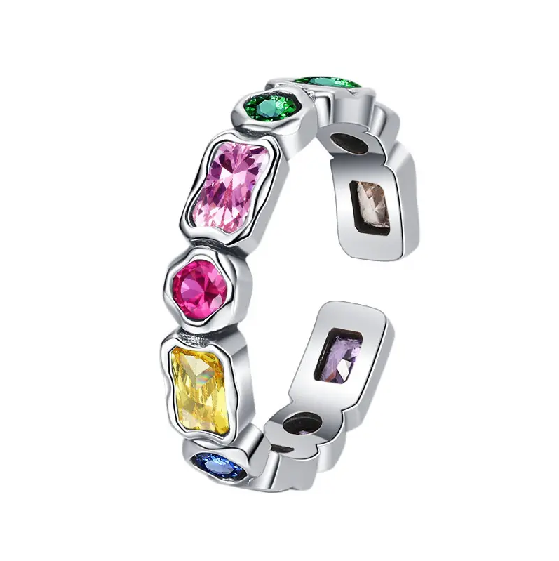 Fiecare zirconiu este prelucrat și tăiat într-o formă specifică pentru a evidenția culorile sale variate și pentru a străluci sub lumina naturală sau artificială. Acest inel elegant și plin de culoare poate fi purtat cu încredere într-o varietate de ocazii, de la evenimente casual la cele mai festive.