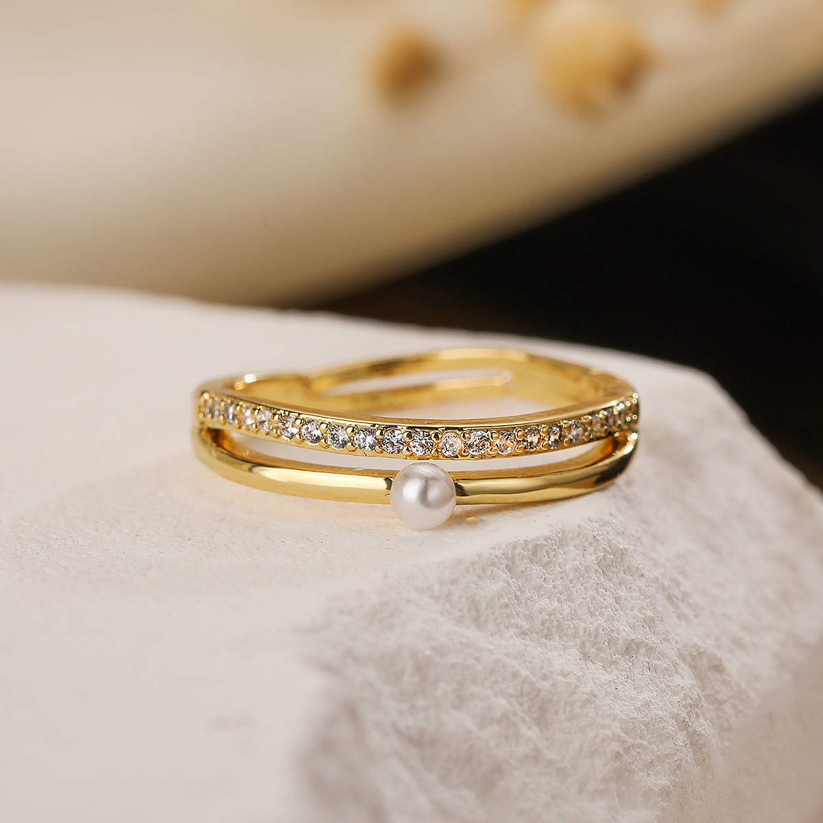 Inelul finut placat aur Fine crystals este elegant și rafinat, având un design distinctiv. Este placat cu aur, conferindu-i un aspect strălucitor și luxos. În centru, inelul se divide în două ramuri subtile și grațioase. Pe una dintre aceste ramuri se găsește un rând strălucitor de cristale, care adaugă o notă de strălucire și sclipire inelului. Pe cealaltă ramură se află un design mai simplu, care accentuează delicat frumusețea inelului. În centrul acestui design simplu se găsește o mică perlă, care emană o eleganță clasică și subtilă. În totalitate, acest inel emană un farmec aparte și poate fi purtat cu încredere în orice ocazie specială sau eveniment elegant.