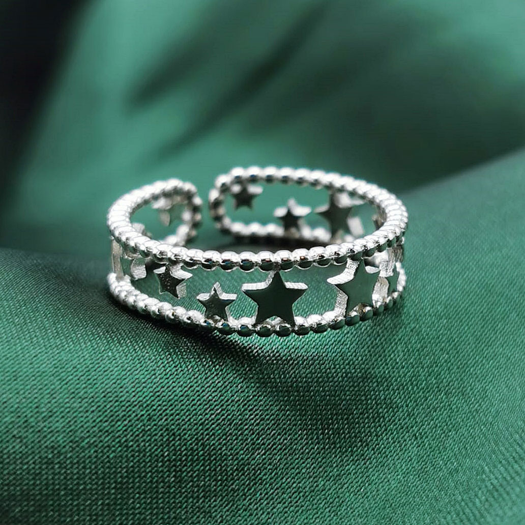 Inelul lat stelute argint 925 poate fi accesorizat tinutelor elegante cat si celor de zi cu zi. Inelul are o lățime mai mare și este decorat cu stelute. Acest inel lat cu stelute poate adăuga un strop de magie și farmec la ținutele dvs. Poate fi purtat atât în contexte de zi cu zi, cât și la ocazii speciale. Este o bijuterie care atrage privirile datorită designului său neobișnuit și poate fi o alegere minunată pentru cei care iubesc aspectul cereesc și visător.