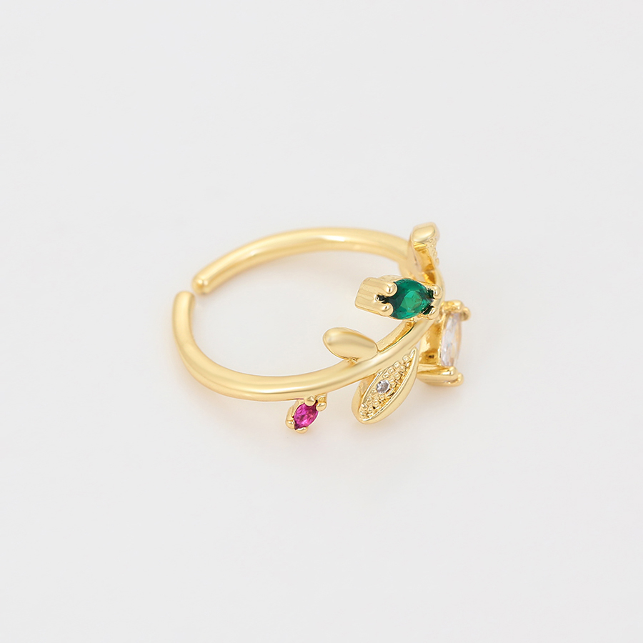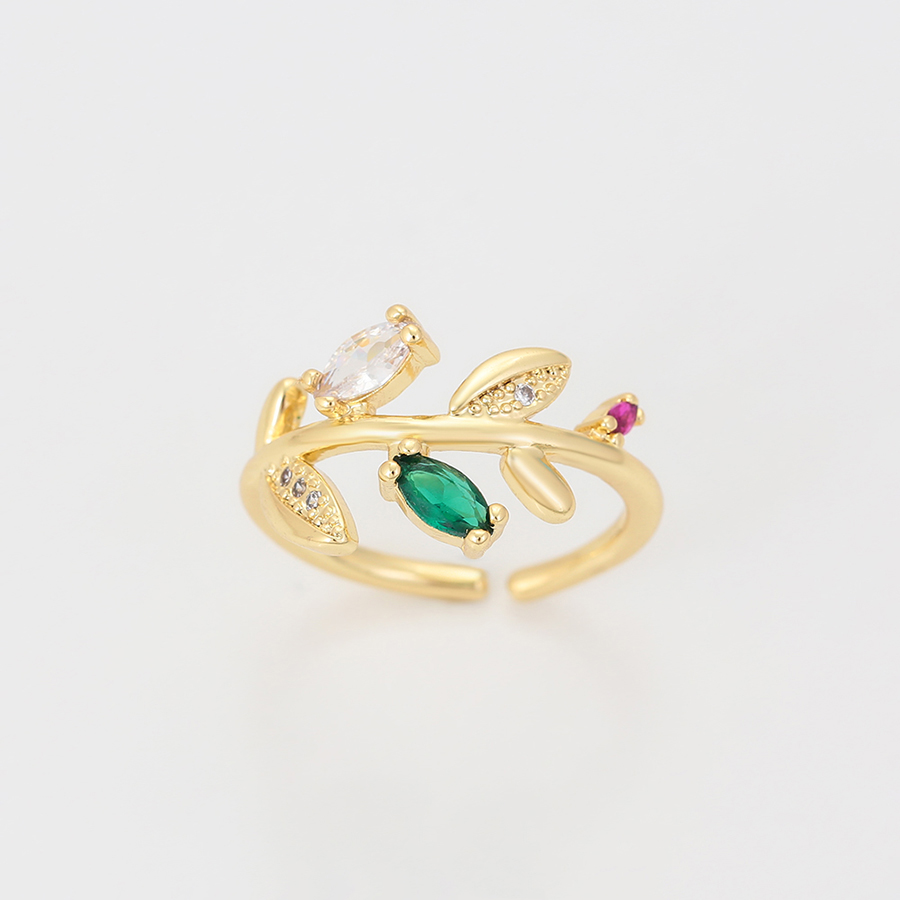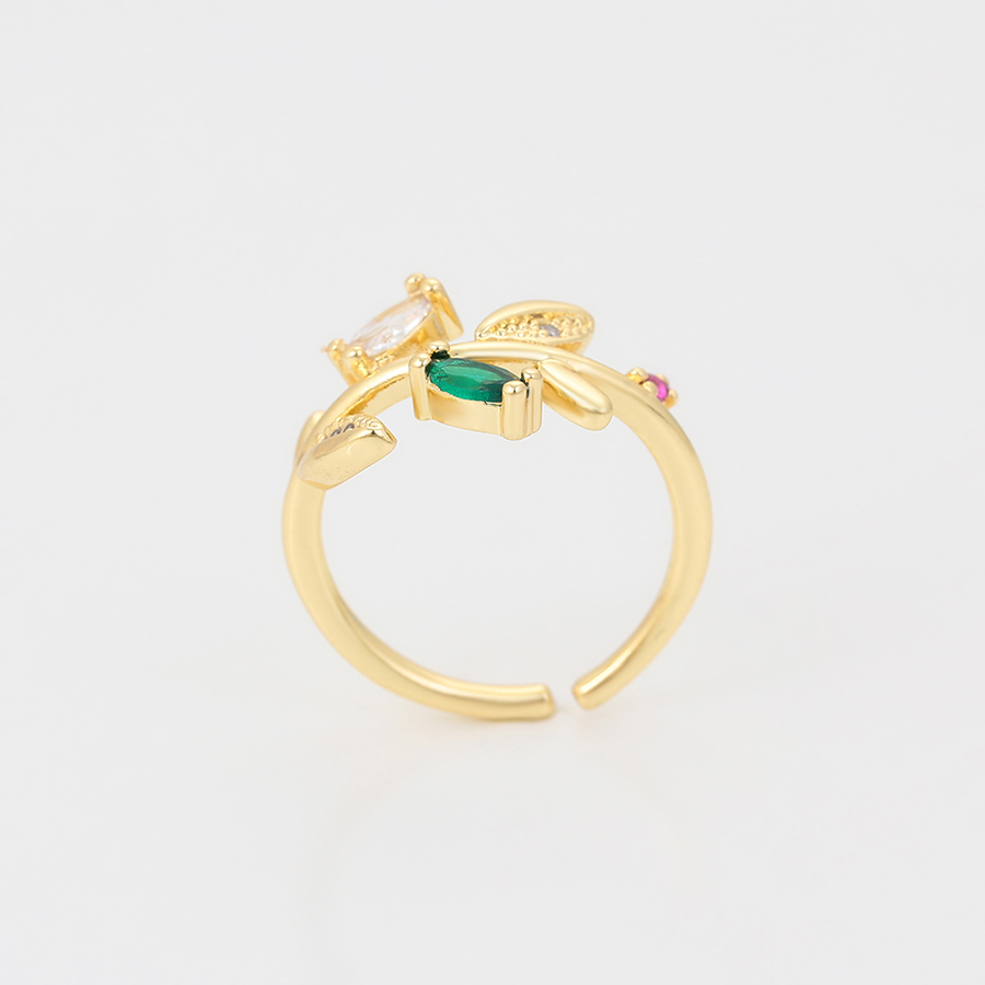 Inelul placat aur frunzulite colorate este realizat dintr-un amestec de aliaje, finisat cu un strat subtil de aur, conferindu-i un aspect elegant și rafinat. Designul său distinctiv îl evidențiază printr-un model central sub forma unei frunzulițe, care adaugă un element organic și natural în estetica sa.
