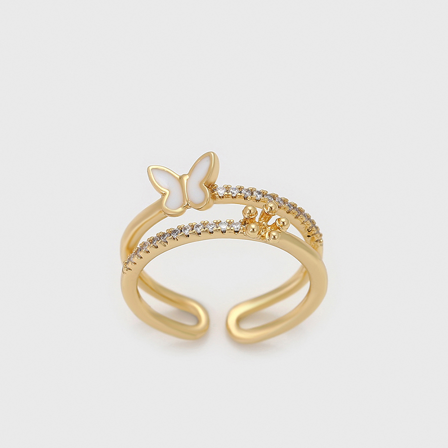 Inelul placat aur Little butterfly este confecționat din aliaj și este placat cu aur, conferindu-i o strălucire caldă și elegantă. Design-ul său distinctiv înglobează două delicate figurine, creând astfel un model în dublu. Fiecare figurina este atent detaliata, capturând grația și frumusețea acestora.