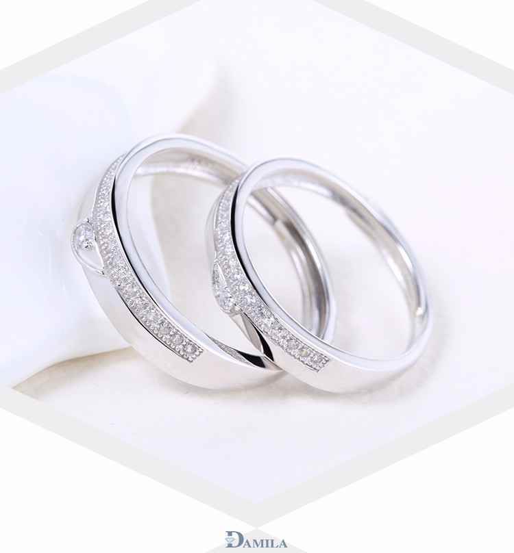Inele cuplu argint 925 ajustabile elegante zirconiu