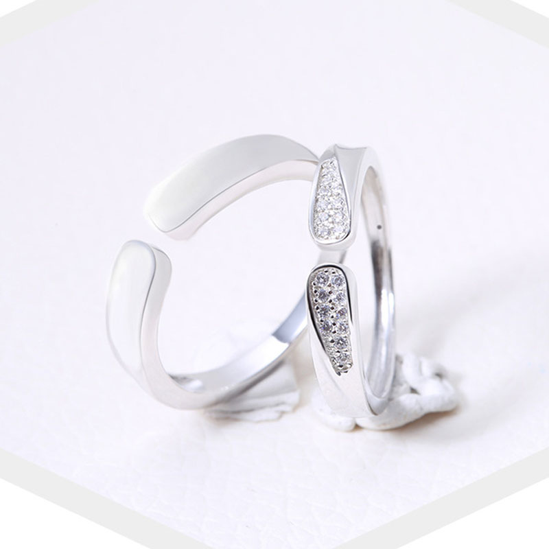 Inelele de cuplu din argint 925 ajustabile sunt o expresie subtilă a legăturii și a iubirii dintre două persoane, printr-un design elegant și strălucirea delicată a pietrelor de zirconiu. Inelul destinat doamnelor este decorat cu grijă, având câteva pietricele strălucitoare din zirconiu dispuse în partea din față. Aceste pietre captură lumina într-un mod fermecător, adăugând o notă de strălucire și rafinament inelului. Inelul pentru domni păstrează un design clasic și rafinat, fără pietre de zirconiu, dar păstrează aceeași simetrie și eleganță ca inelul pentru doamne.