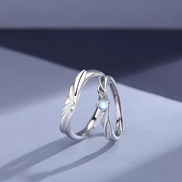 Inelele cuplu argint 925 angel wing sunt un excelent cadou pentru ocazii speciale intre indragostiti si este placat cu platina pentru o stralucire indelungata. Inelul pentru doamne are în centrul său o piatră a lunii. Această piatră, cunoscută și sub denumirea de opal de lună, are o culoare lăptoasă și un joc subtil de culori, adăugând o notă de mister și romantism bijuteriei.
