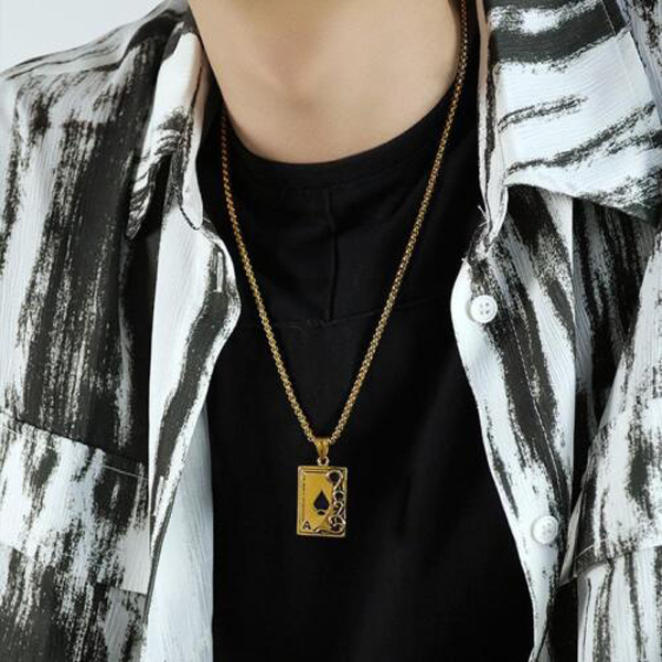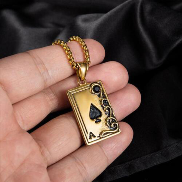 Lantul pandantiv As placat aur este o bijuterie interesantă și stilată. Pandantivul și lanțul sunt, în cazul de față, placate cu aur pentru a conferi bijuteriei un aspect strălucitor și elegant.