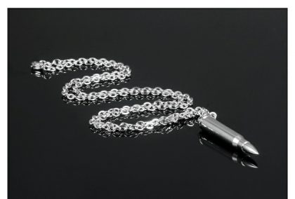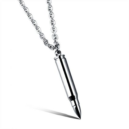 Pandantivul este sub forma unui glonț, care este un simbol puternic, având semnificații variate. Acest design poate reprezenta curaj, putere, aventură sau poate avea o semnificație personală, în funcție de purtător. Oțelul inoxidabil este un material ușor de întreținut. Bijuteria poate fi curățată cu un șervețel moale și o soluție de curățat bijuterii pentru a menține aspectul său strălucitor.