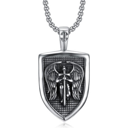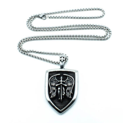 Lantul pandantiv scut stainless stell este confecționat din oțel inoxidabil de înaltă calitate, aducând un amestec de durabilitate și stil. Lanțul, robust și rezistent, servește ca un suport solid pentru pandantivul în formă de scut, adăugând un element de forță și eleganță la bijuterie.