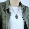 Elementul central al bijuteriei este pandantivul sculptat în forma unui scut. Această formă poate simboliza protecție, forță sau chiar un stil medieval, oferind bijuteriei un caracter distinctiv.