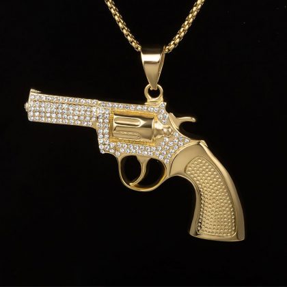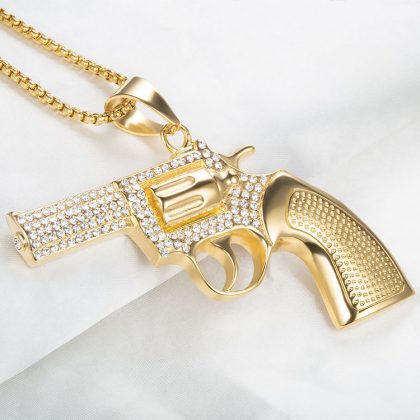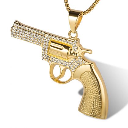 Lantul placat aur pandantiv pistol este o bijuterie masculină și elegantă care poate reflecta pasiunea pentru arme sau poate fi o declarație de stil.