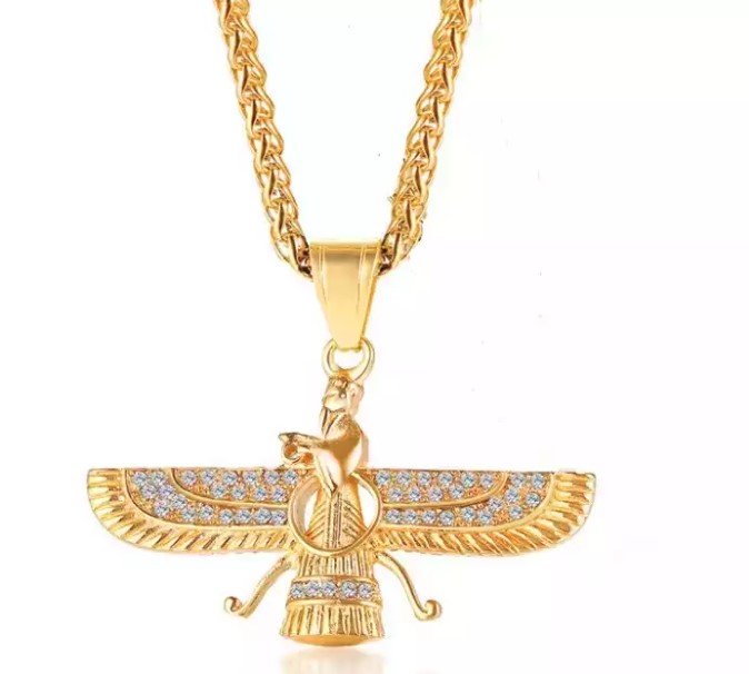 Lantul placat aur pandantiv zoroastrism în formă de simbol sau temă asociată cu Zoroastrismul, este o bijuterie care aduce un omagiu unei tradiții istorice și culturale.
