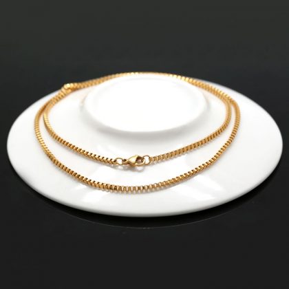 Oțelul inoxidabil din care este conceput acest lant este cunoscut pentru rezistența sa la coroziune și uzură, în timp ce placarea cu aur îI oferă un aspect elegant și strălucitor.