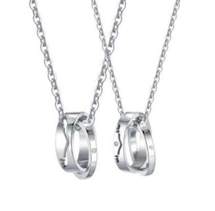 Aceste lănțișoare cu pandantive sub formă de inele din oțel inoxidabil sunt o modalitate minunată de a sărbători iubirea și angajamentul într-o relație de cuplu. Ele servesc ca amintire a legăturii voastre speciale și pot fi purtate cu mândrie pentru a arăta lumii dragostea și unitatea voastră.